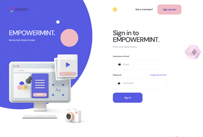 Empowermint Web3 Website Design Signup HTML and Figma.